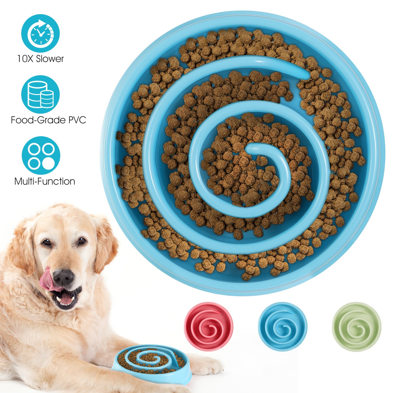 Are your dogs facing these problems such as indigestive, eating too fast? We have no idea why do dogs feel like eating has to be a race, but we solved the problem anyway. With unique meal-lengthening maze design, Fun Feeders keep pups engaged for up to 10x longer at chow time, which improves digestion while helping furry friends have a happy meal time with the healthy pace. The product is made of food-safe, high-strength PP materials, and is BPA free and 100% recyclable. Every meal will turn into a dog healthy and happy games by using Fun Feeder Dog Bowl.