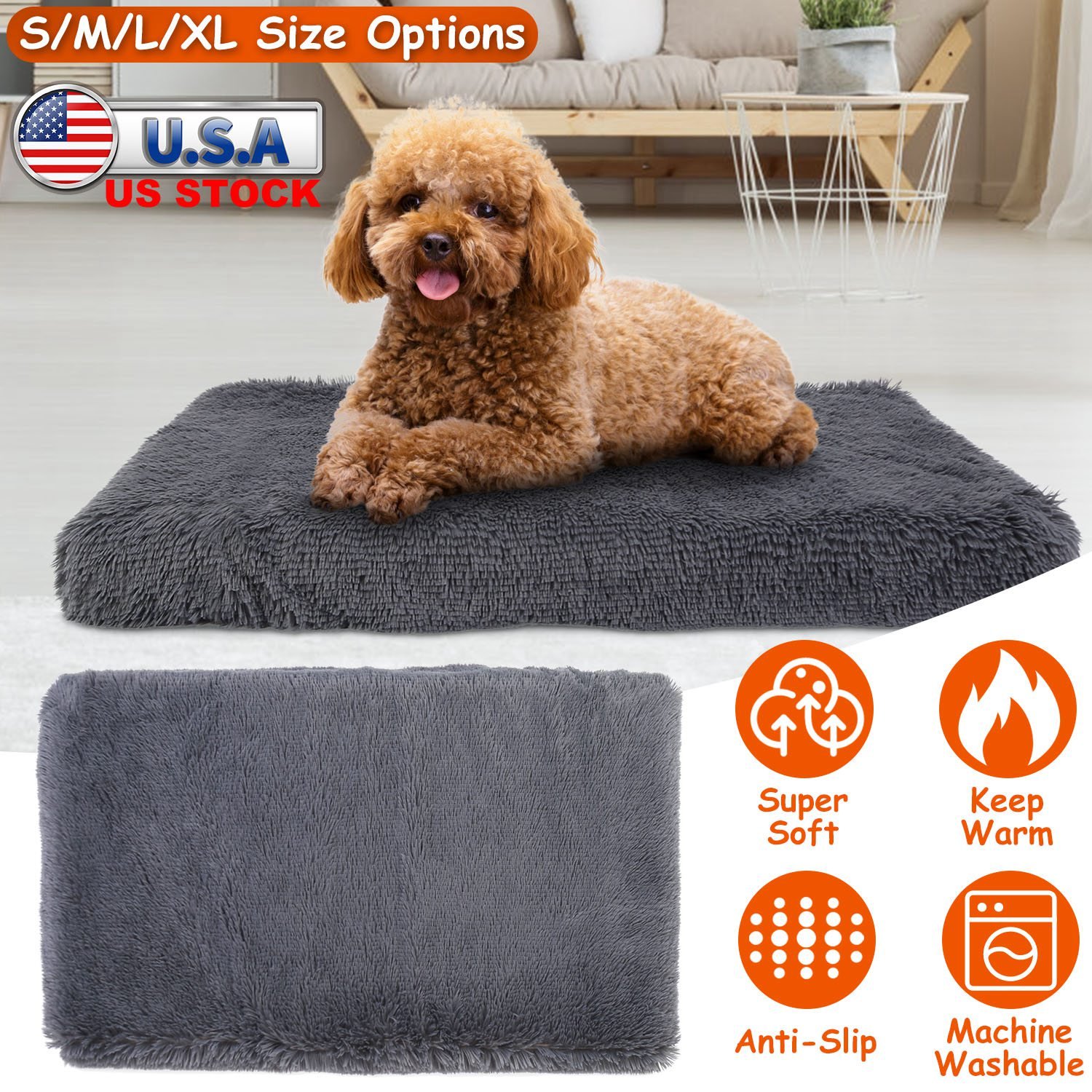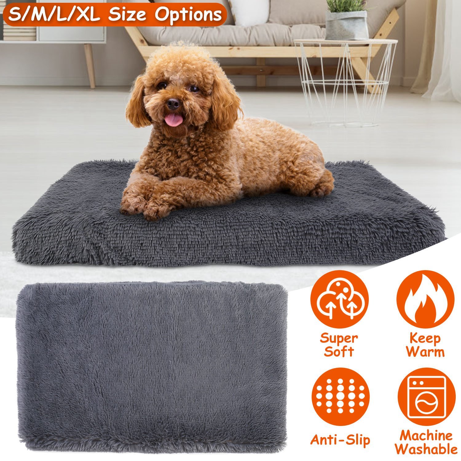 Made from high-grade long plush in the surface and filled with egg crate sponge inside, our dog bed is super soft, odorless and cozy. Adopting premium oxford fabric materials with plastic dots on the bottom, can effectively prevent the bed from slipping and ensure durability. Besides, the cover can be removed and is machine washable, which is easy to clean. S/M/L/XL Sizes are provided for your dogs, meeting your different needs. It\'s an ideal gift for your beloved pets to keep warm and comfortable in this cold winter.